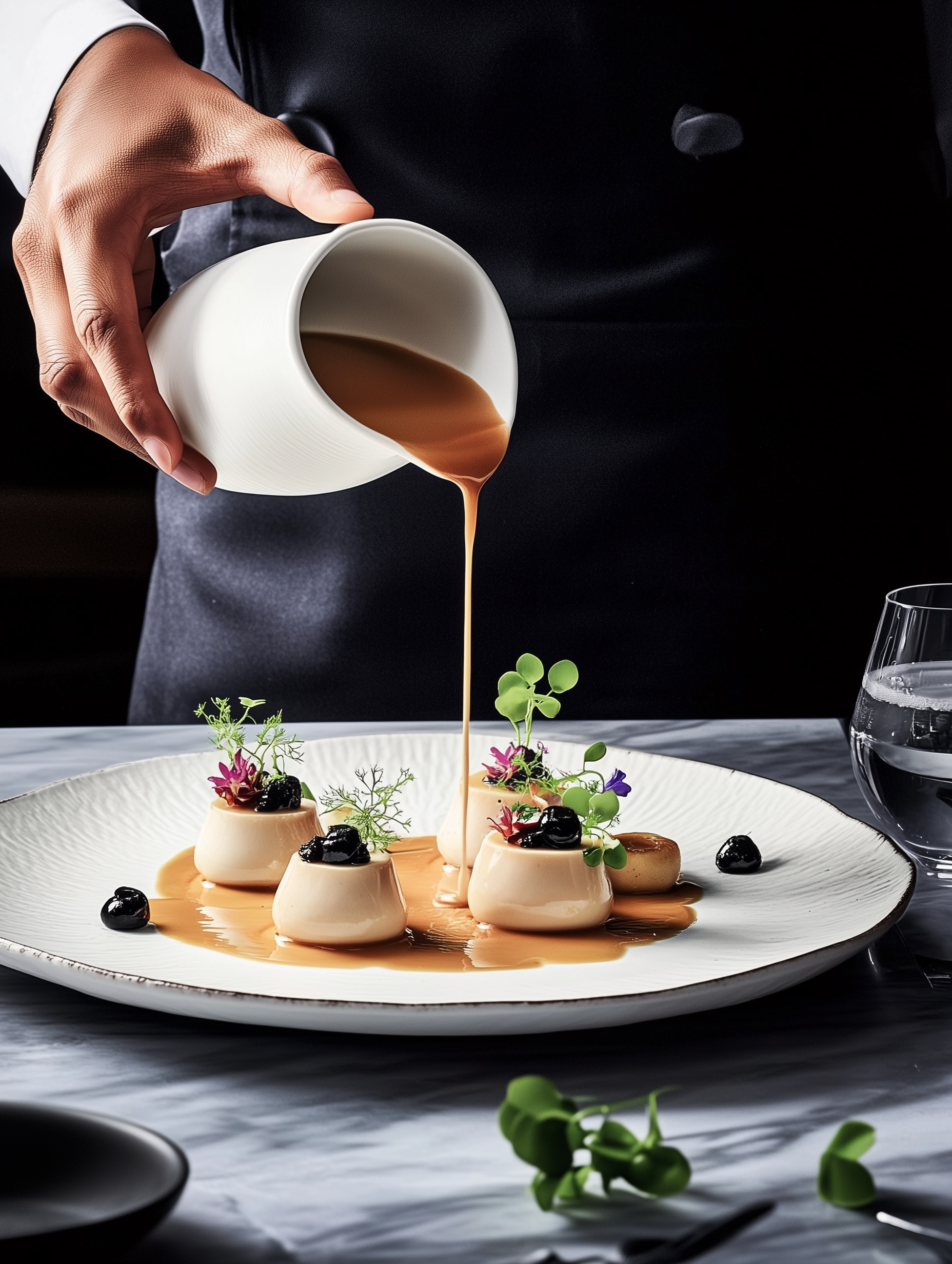 Create a dish description that emphasizes essential ingredients, distinctive flavors and textures.